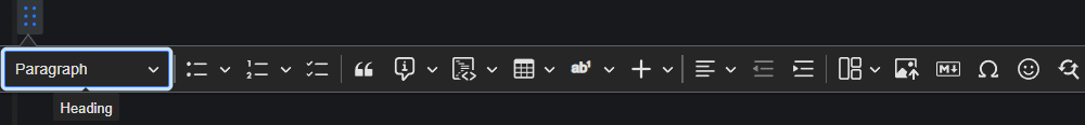 选择文本时显示的工具栏。这提供了文本级格式,例如粗体、斜体、文本颜色、内联代码等。