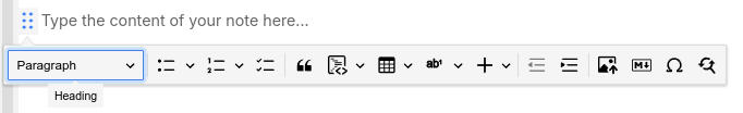 单击此弹出窗口将显示特定于整个段落的格式选项,例如设置标题、列表、表格等。
