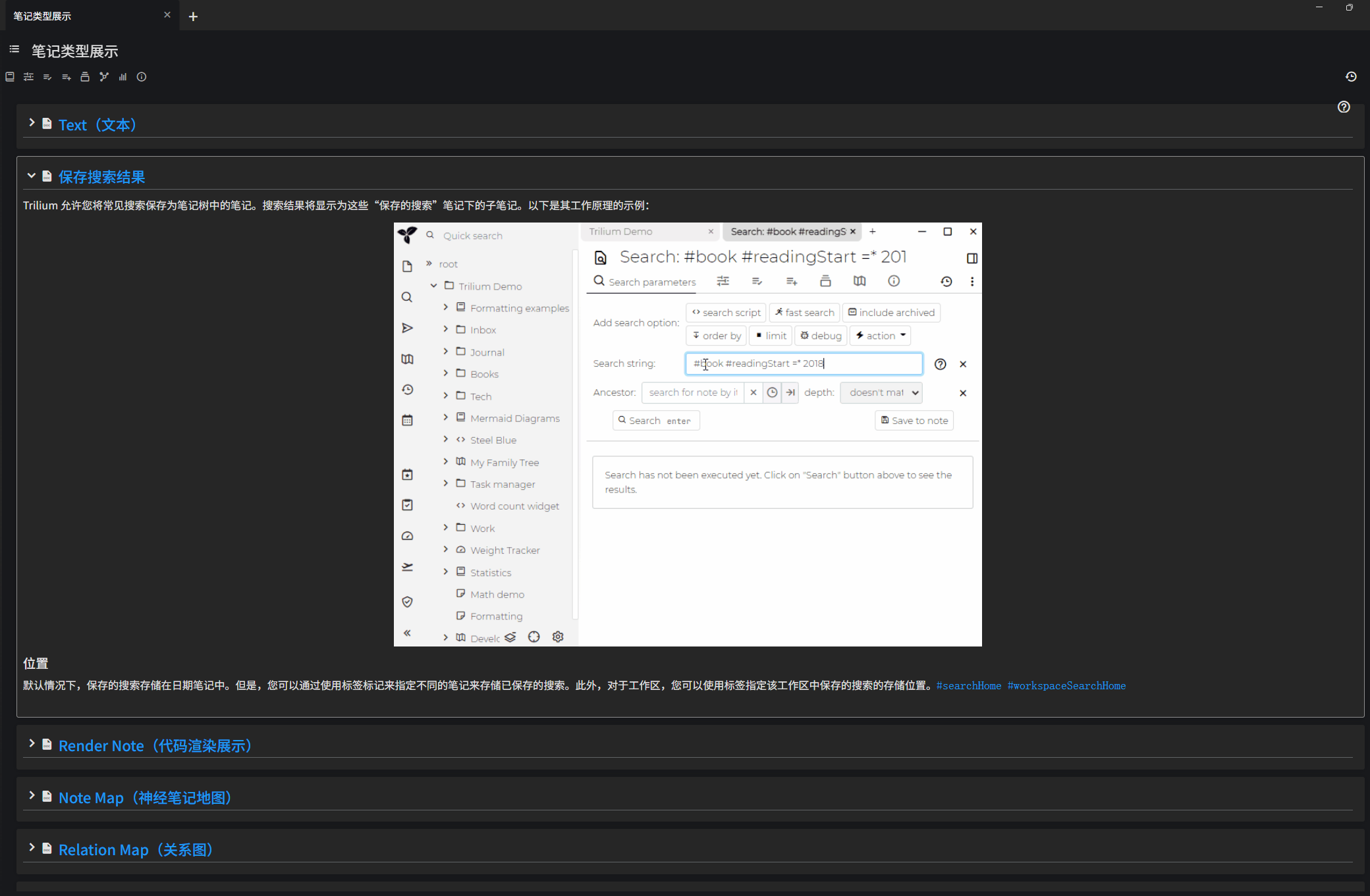 • 每个笔记都可以通过单击标题左侧的箭头来展开或折叠。