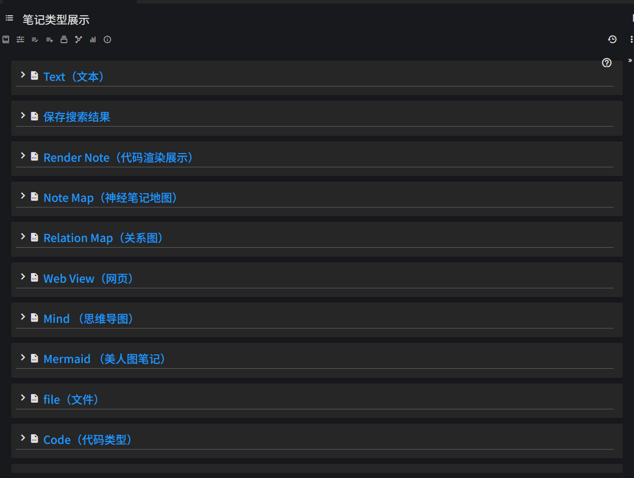 列表视图类似网格视图,但在列表视图模式下,每个注释都显示在一行中,默认情况下仅显示注释的标题和图标。通过按展开按钮,可以查看笔记的内容以及笔记的子项(递归)。