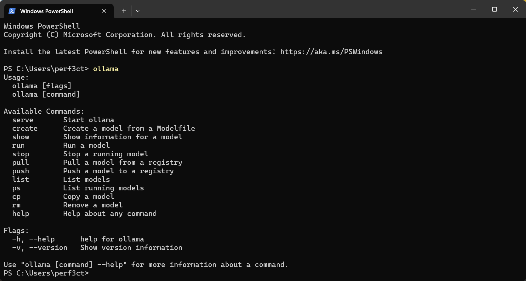 此外,您应该可以通过 Powershell 或 CMD 访问 CLI:ollama