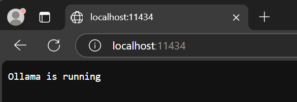 ollama pull mxbai-embed-large此外,您可以通过转到 http://localhost:11434 来确保它正在运行,您应该会得到以下响应(端口 11434 是“正常”Ollama 端口):