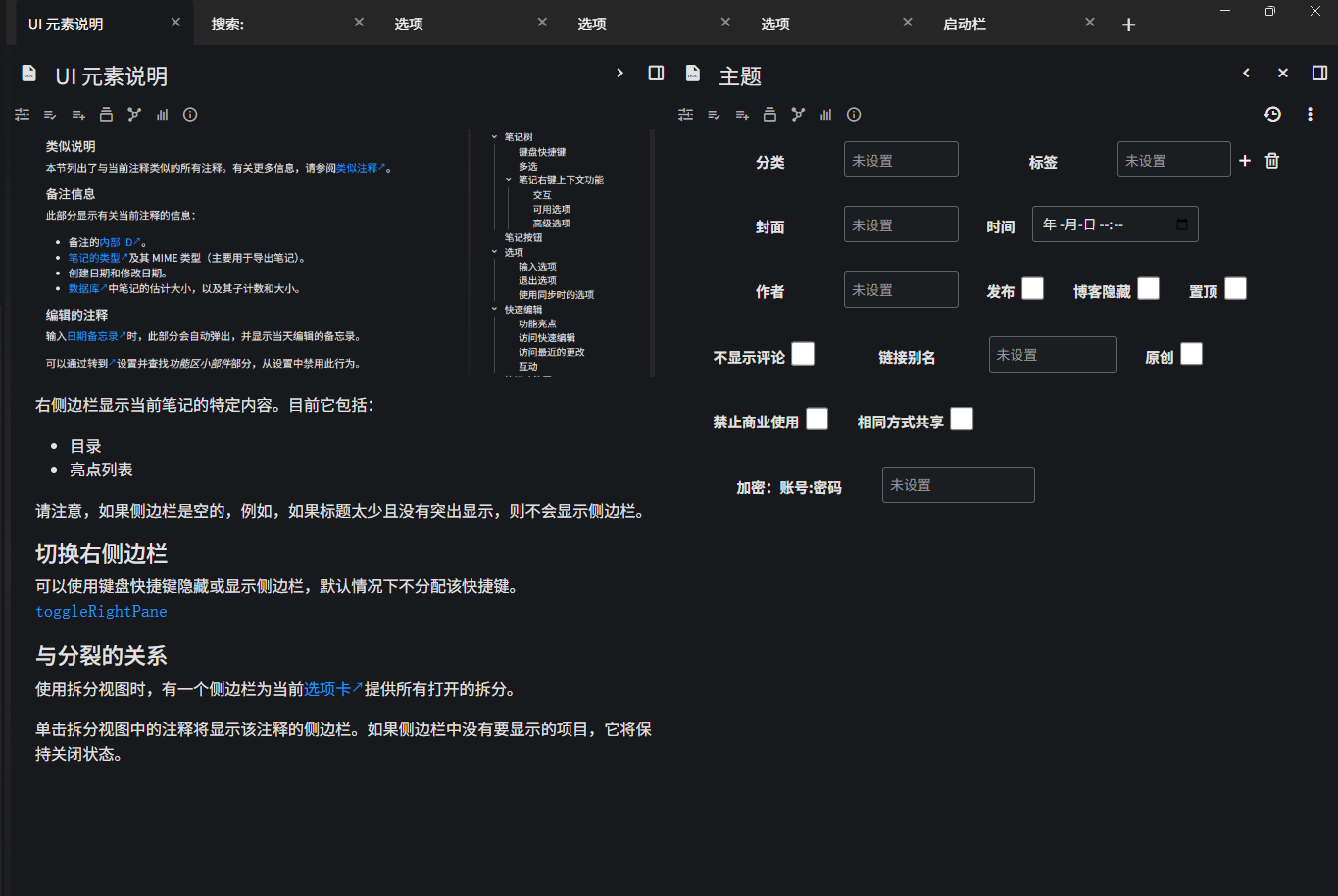 在 Trilium 中,可以并排处理两个或多个笔记。