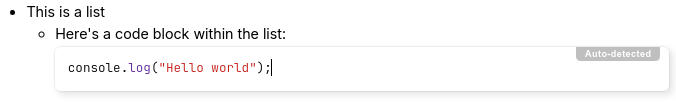 可以添加内容级块,例如标题、代码块、列表中的表格,如下所示: