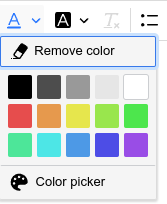可以使用调色板中的一种预定义颜色对所选文本进行着色,也可以使用颜色选择器选择任何颜色。