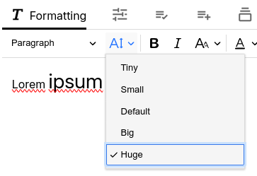 与 Microsoft Word 等其他文本编辑器不同,字体大小是相对的(即“Tiny”、“Small”而不是 12 等数字)。