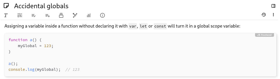 当语言设置为自动检测(默认情况下)时,Trilium 将尝试识别与给定文本片段相对应的编程语言(或类似语言)并将其突出显示。如果这有问题,请考虑手动更改代码块的语言。