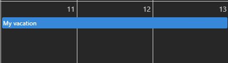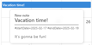 日历视图将日历中的每个子笔记显示为事件,该日历具有开始日期和可选的结束日期。
