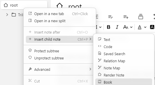 | 1 | ![]() | 日历视图仅适用于收藏笔记类型。要创建新笔记,请右键单击左侧的笔记树,然后选择“在之后插入笔记”,或“插入子笔记”,然后选择“集合”。 |