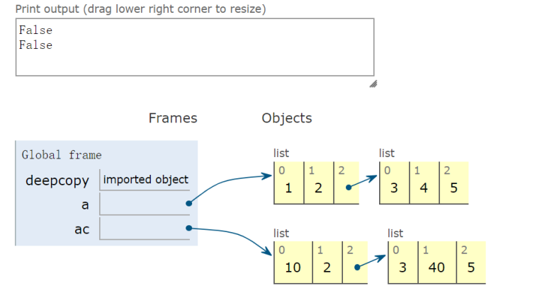print(lst[4][1] == sku_deeps[4][1]) # 返回 True,进⼀步证明是浅拷⻉,不是深拷⻉。